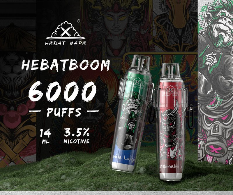 Hebat Boom 6000 yog cov khoom siv hluav taws xob uas siv tau thiab rov them rov qab.Cov khoom lag luam raug nqi ntau txog 10 cov khoom qab zib: Tieguanyin, Iced cola, Grape ice, Lychee, Blueberry, Passion fruit, Mint, Strawberry, Lush ice, zog haus.