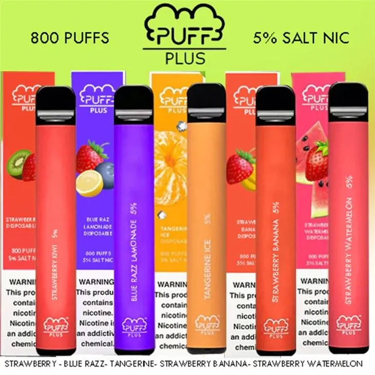 Puff Bars Disposable Electronic Cigarette tuaj nrog ntau dua 800 Puffs thiab ntau yam qab qab. Qhov tsw ntawm Puff Plus yog luam tawm rau pem hauv ntej ntawm lub ntim, thiab xim ntawm PUFF Bar Plus kuj qhia txog tsw. Txhua PUFF PLUS cov khoom siv pov tseg tuaj nrog 5 feem pua (50mg) ntawm cov ntsev ntsev uas txaus kom txaus siab rau txhua hnub.